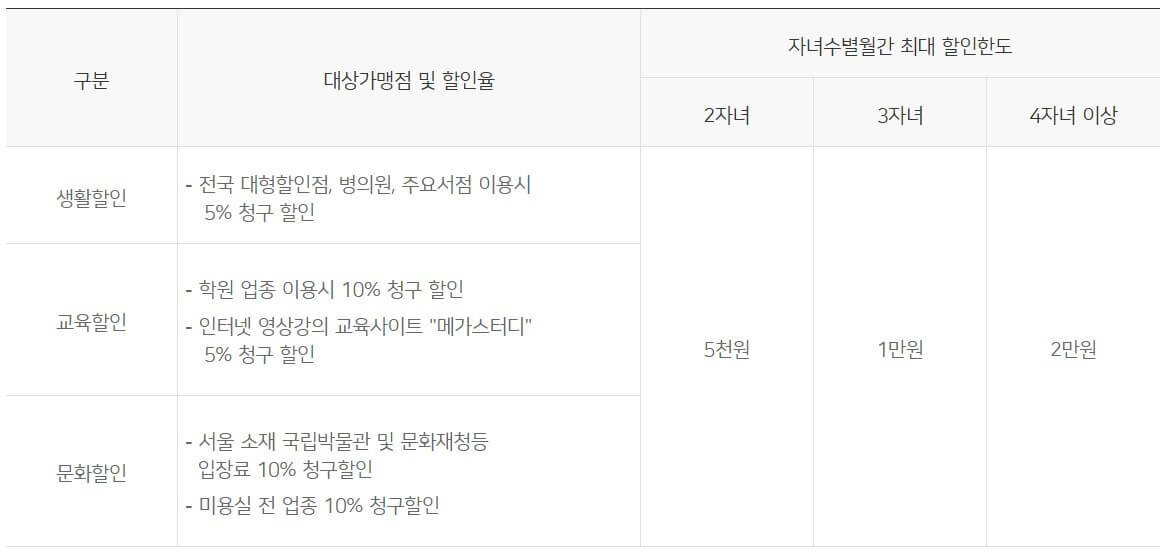 | 서울시 다둥이 행복카드 혜택 |