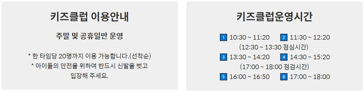 º 이용안내 / 키즈클럽운영시간