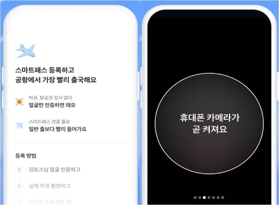 ⑤ 「여권 촬영 > 여권 스캔 > 얼굴 인식」 단계를 거치면 스마트패스에 여권 등록 완료.